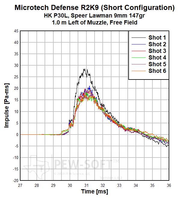 Fig 6a. Microtech Defense R2K9 (Short Configuration) subsonic 9x19mm HK P30L Semiautomatic Pistol Muzzle Sound Impulse Signature
