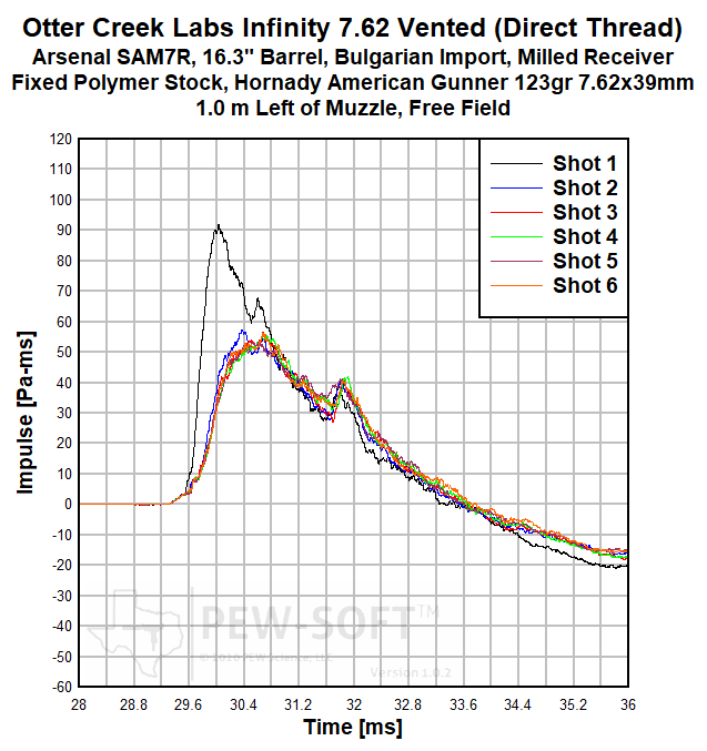 Figure 4a. Otter Creek Labs Infinity Vented 7.62×39mm 16.3-in barrel Bulgarian AK Muzzle Sound Impulse Signature