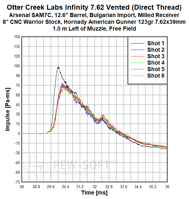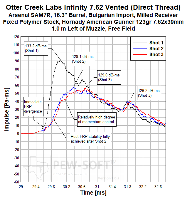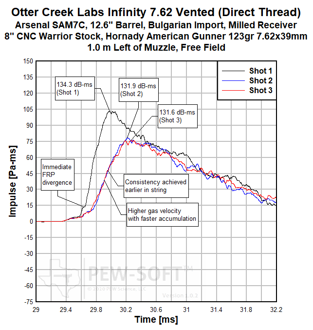 Fig 8b. Otter Creek Labs Infinity Vented 7.62×39mm 12.6-in barrel Bulgarian AK Muzzle Sound Impulse Signature