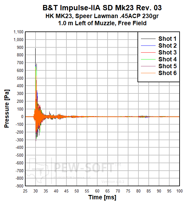 Fig 8a. B&T Impulse-IIA SD Mk23 Rev. 03 Subsonic .45 ACP HK MK23 Semiautomatic Pistol Muzzle Sound Pressure Signature