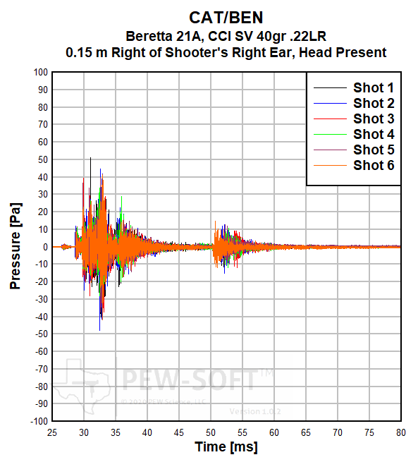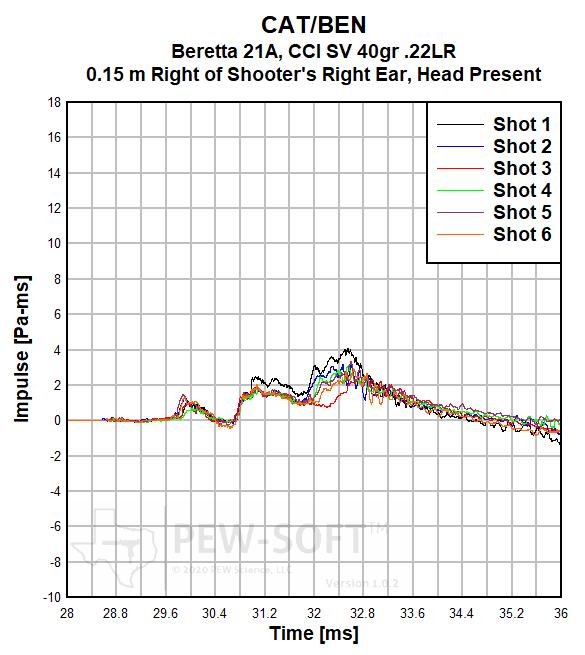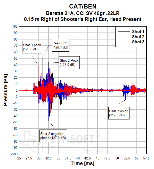 Figure 4a. CAT BEN Subsonic .22 LR Beretta 21A Subcompact Semiautomatic Pistol Ear Sound Impulse Signature