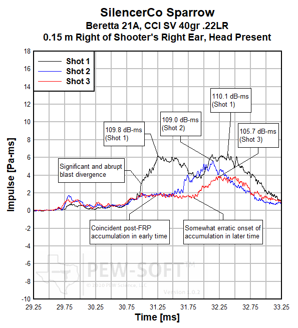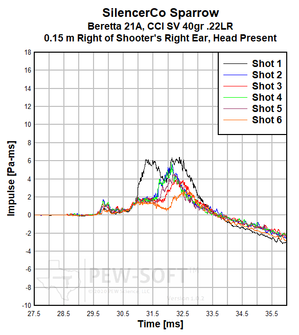 Figure 4a. SilencerCo Sparrow Subsonic .22 LR Beretta 21A Subcompact Semiautomatic Pistol Ear Sound Impulse Signature
