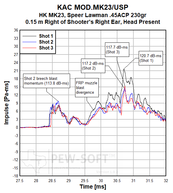 Figure 11b. B&T Impulse-IIA SD Mk23 Rev. 03 Subsonic .45 ACP HK MK23 Semiautomatic Pistol Ear Sound Impulse Signature
